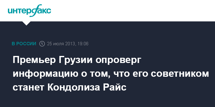 Тбилиси. 25 июля. INTERFAX.RU - Премьер-министр Грузии Бидзина Иванишвили опроверг распространенную в некоторых СМИ информацию о том, что экс-госсекретарь США Кондолиза Райс может стать его советником.