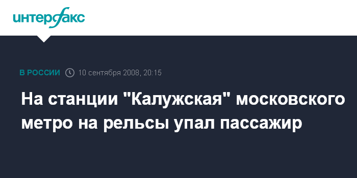 Москва.10 сентября. ИНТЕРФАКС-МОСКВА - На станции "Калужская" на пути следования поездов по направлению из центра в среду вечером произошло падение человека, сообщили "Интерфаксу" в пресс-службе метро.