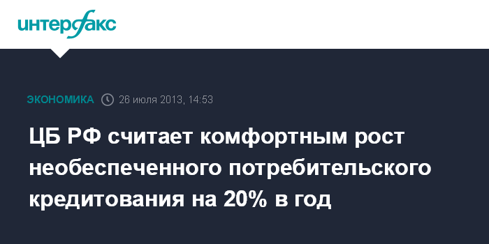 ЦБ РФ считает комфортным рост необеспеченного потребительского кредитования на 20% в год