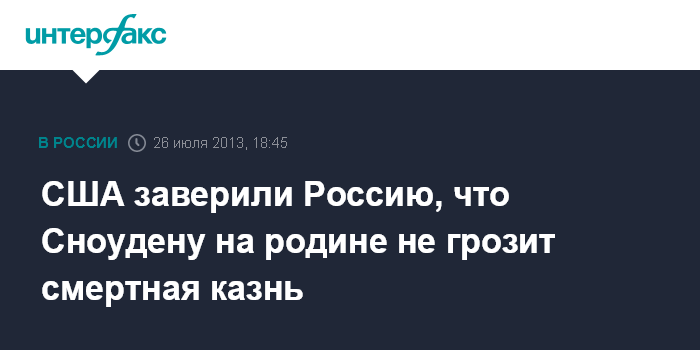 США заверили Россию, что Сноудену на родине не грозит смертная казнь