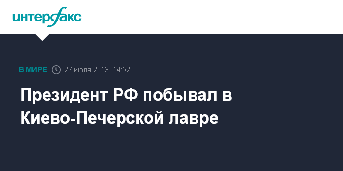 Киев. 27 июля. INTERFAX.RU - Президент России Владимир Путин побывал в субботу в Киево-Печерской лавре, где посетил Успенский собор, поклонился Кресту Андрея Первозванного и могиле Петра Столыпина.