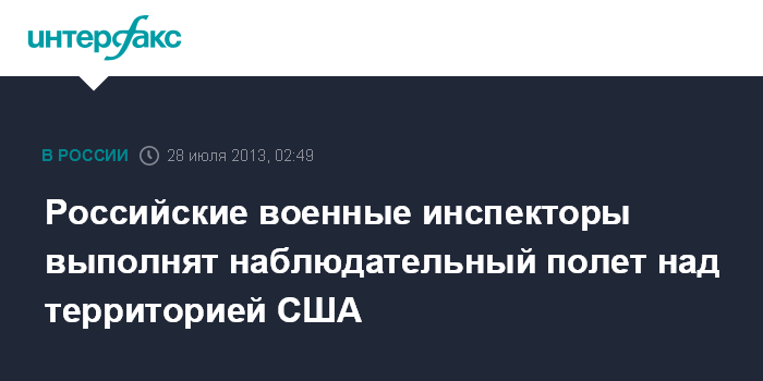 Российские военные инспекторы выполнят наблюдательный полет над территорией США
