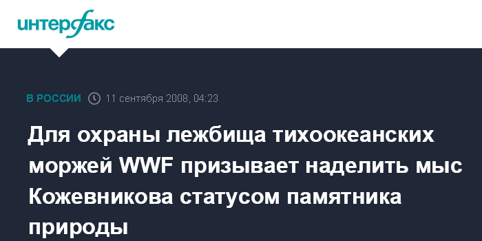 Анадырь. 11 сентября. ИНТЕРФАКС - ДАЛЬНИЙ ВОСТОК - На Чукотке около тысячи моржей подошли к мысу Кожевникова, где в ближайшее время сформируют береговое лежбище, которое будет находиться под охраной "Медвежьего патруля" Всемирного фонда дикой природы (WWF) и жителей села Рыркайпий.