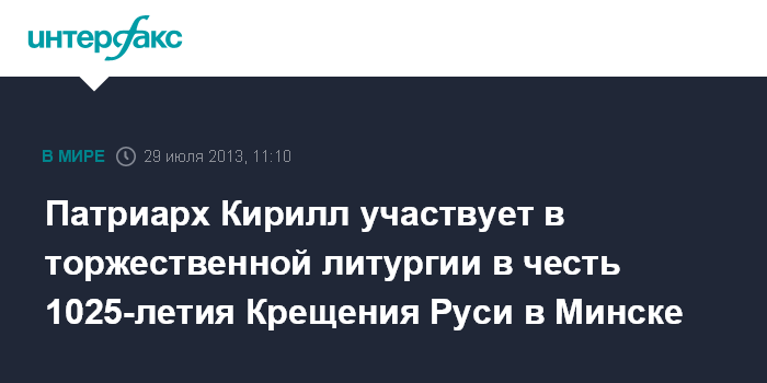 Патриарх Кирилл участвует в торжественной литургии в честь 1025-летия Крещения Руси в Минске