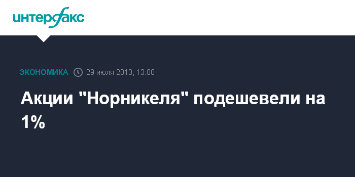 Москва. 29 июля. INTERFAX.RU - Акции "Норникеля" днем в понедельник подешевели на 1% после публикации производственного отчета за первое полугодие.