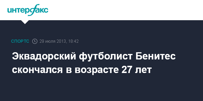 Москва. 29 июля. INTERFAX.RU – Нападающий сборной Эквадора Кристиан Бенитес, выступавший за катарский клуб "Эль-Джаиш" скончался в возрасте 27 лет.