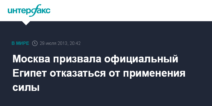 Москва. 29 июля. INTERFAX.RU - МИД РФ считает, что египетские политики должны отказаться от силовых методов разрешения существующих между ними противоречий, а власти этой страны должны исходить из приоритета обеспечения прав граждан. Об этом гоорится в сообщении замдиректора Департамента информации и печати МИД РФ Марии Захаровой, опубликованном на сайте ведомства в понедельник.