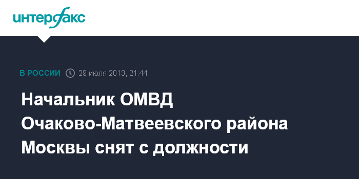 Москва. 29 июля. INTERFAX.RU - Начальник отдела полиции по району Очаково-Матвеевское снят с должности.