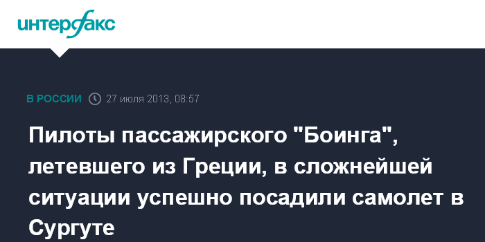 Пилоты пассажирского "Боинга", летевшего из Греции, в сложнейшей ситуации успешно посадили самолет в Сургуте