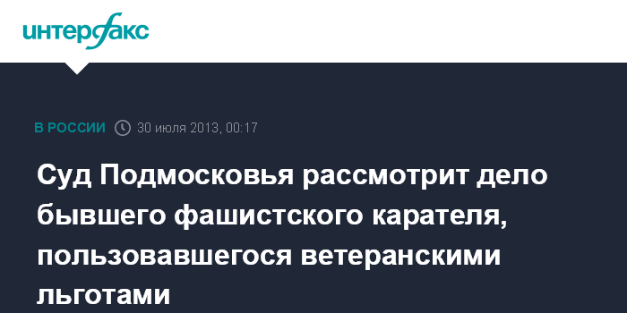 Суд Подмосковья рассмотрит дело бывшего фашистского карателя, пользовавшегося ветеранскими льготами