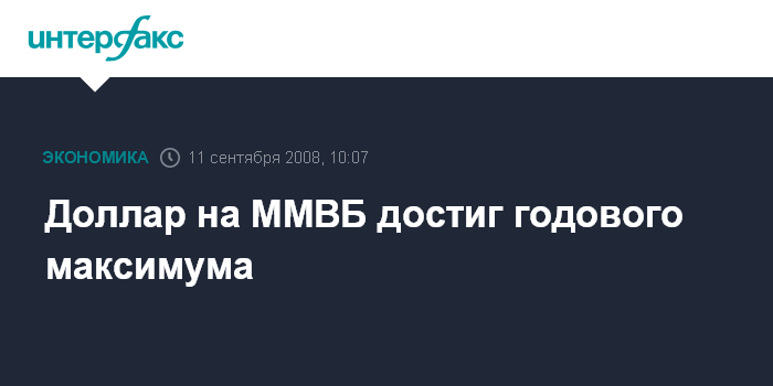 Москва. 11 сентября. INTERFAX.RU - Доллар существенно вырос в первые минуты торгов ММВБ, поднявшись к 10:02 мск до 25,78 руб./$1, на 15 коп. к уровню закрытия предыдущего дня, обновив тем самым максимум с середины 2007 года.