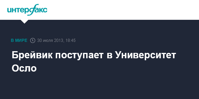 Осло. 30 июля. INTERFAX.RU - Норвежский террорист Андерс Брейвик подал документы на поступление на факультет политологии Университета Осло, сообщил во вторник местный телеканал "ТВ-2".