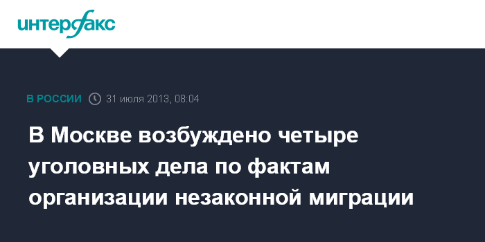 Москва. 31 июля. INTERFAX.RU - Четыре уголовных дела возбуждено за сутки столичной полицией по фактам организации незаконной миграции, сообщили "Интерфаксу" в пресс-службе ГУ МВД России по Москве.