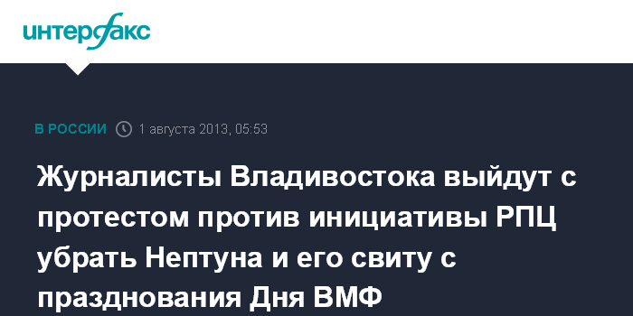 Журналисты Владивостока выйдут с протестом против инициативы РПЦ убрать Нептуна и его свиту с празднования Дня ВМФ