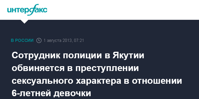 Якутск. 1 августа. ИНТЕРФАКС-ДАЛЬНИЙ ВОСТОК - Следователи возбудили уголовное дело против сотрудника полиции, который обвиняется в совершении преступления сексуального характера в отношении несовершеннолетней, сообщает в четверг пресс-служба СУ СК РФ по Якутии.