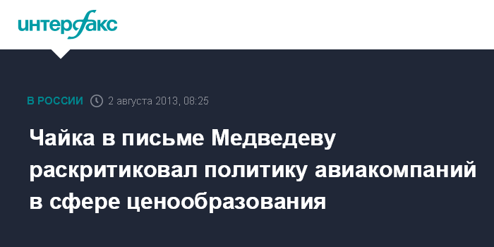 Чайка в письме Медведеву раскритиковал политику авиакомпаний в сфере ценообразования