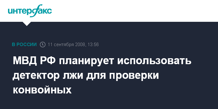 Москва. 11 сентября. INTERFAX.RU - В МВД России намерены регулярно тестировать на детекторе лжи сотрудников охранно-конвойной службы и спецучреждений министерства.