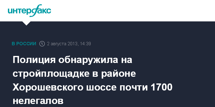 Москва. 2 августа. INTERFAX.RU - Полиция выявила на севере Москвы незаконное проживание иностранцев, для проверки в полицию доставлены почти 1700 человек, сообщили "Интерфаксу" в пресс-службе столичного управления МВД России.