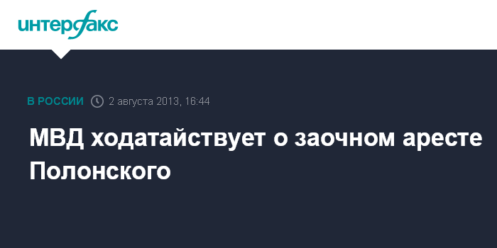 Москва. 2 августа. INTERFAX.RU - МВД просит суд о заочном аресте предпринимателя Сергея Полонского, сообщает пресс-центр ведомства.