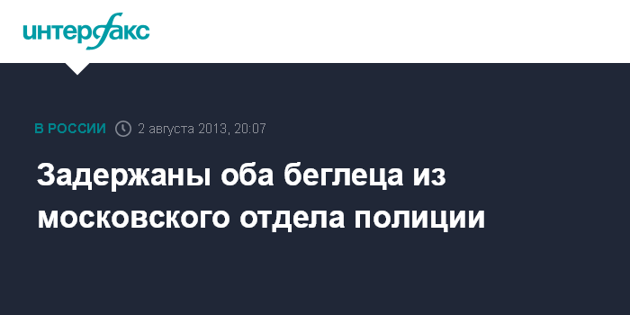 Москва. 2 августа. INTERFAX.RU - Задержаны оба уроженца Абхазии, ранее сбежавшие из отдела полиции Гагаринского района, сообщили "Интерфаксу" в пресс-службе ГУ МВД России по Москве.