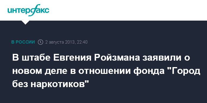 Москва. 2 августа. INTERFAX.RU - Еще одно уголовное дело возбужденно в отношении фонда Евгения Ройзмана "Город без наркотиков", также в его мастерской прошли обыски, сообщила на своей страничке в Facebook глава предвыборного штаба Ройзмана Аксана Панова.