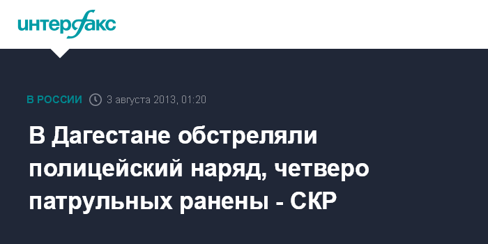 Махачкала. 3 августа. ИНТЕРФАКС-ЮГ - Четверо полицейских получили ранения в результате обстрела патрульной машины в Каякентском районе Дагестана, сообщили агентству "Интерфакс-Юг" в СУ СКР по Дагестану.