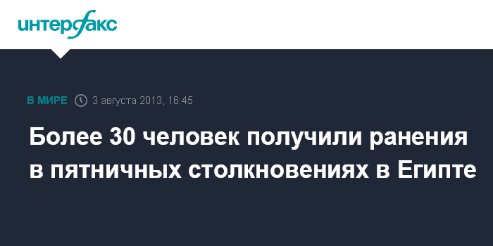 Каир. 3 августа. INTERFAX.RU - По меньшей мере, 34 человека пострадали в пятницу в Египте в результате столкновений сторонников свергнутого президента Мухаммеда Мурси с полицией, сообщил в субботу представитель министерства здравоохранения страны Халед аль-Хатыб.
