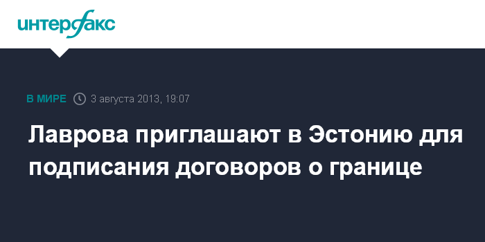 Таллин. 3 августа. INTERFAX.RU - Эстония направила министру иностранных дел России Сергею Лаврову приглашение посетить страну для подписания договоров о сухопутной и морской границе. "Министру иностранных дел России направлено приглашение посетить Эстонию. О конкретной дате пока соглашения не достигнуто", - сказал глава МИД Эстонии Урмас Паэт в субботу порталу Delfi. "Визит состоится, когда будет достигнута конкретная договоренность, подтвержденная обеими сторонами. Пока этого нет", - отметил У.Паэт.