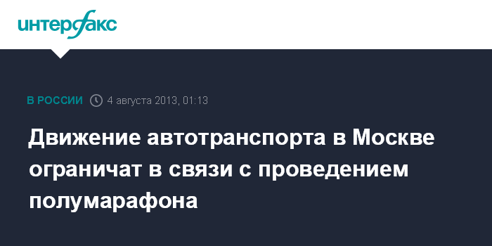 "В связи с проведением в воскресенье Московского полумарафона с 9 до 13:30 часов будет ограничено движение автотранспорта, в том числе и общественного по Новолужнецкому проезду, Лужнецкой, Фрунзенской, Пречистенской, Кремлевской и Москворецкой набережным", - сказал сотрудник пресс-службы.