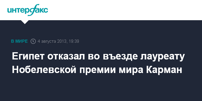 Египет отказал во въезде лауреату Нобелевской премии мира Карман