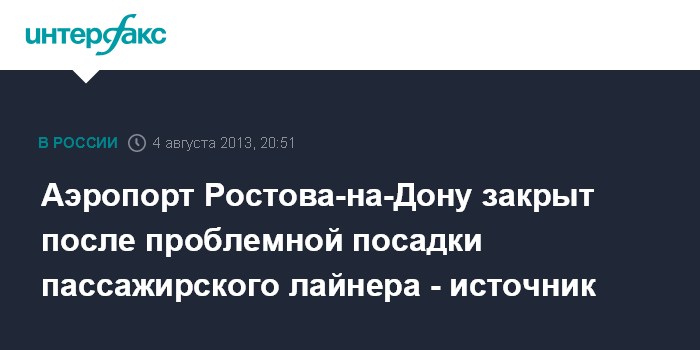 Аэропорт Ростова-на-Дону закрыт после проблемной посадки пассажирского лайнера - источник