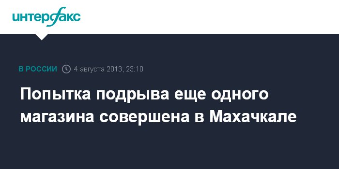 Махачкала. 4 августа. ИНТЕРФАКС-ЮГ - Попытка взрыва фирменного магазина завода "Кристалл" совершена в воскресенье вечером в Махачкале, сообщили "Интерфаксу" в пресс-службе МВД по республике.