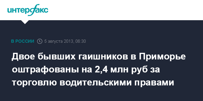 Владивосток. 5 августа. ИНТЕРФАКС - ДАЛЬНИЙ ВОСТОК - Суд в Приморье вынес приговор двум бывшим сотрудникам межрайонного экзаменационного отделения ГИБДД края, которые за взятки выдавали водительские удостоверения.