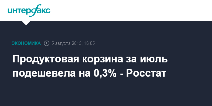 Продуктовая корзина за июль подешевела на 0,3% - Росстат