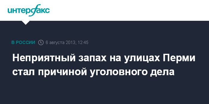 Пермь. 6 августа. INTERFAX.RU - Полицейские возбудили уголовное дело по материалам проверки, проведенной пермской межрайонной природоохранной прокуратурой после массовых жалоб на неприятный запах, который горожане ощущали в воздухе в течение нескольких дней в июле.