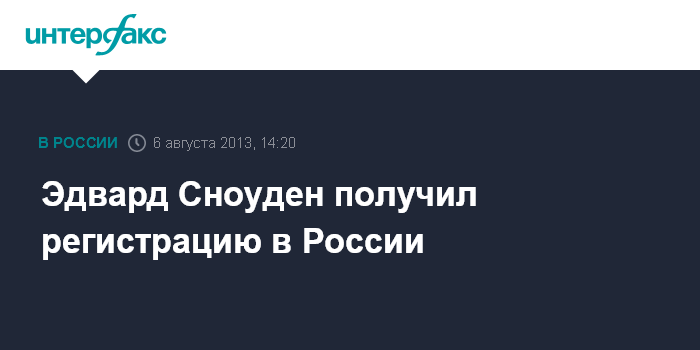 Москва. 6 августа. INTERFAX.RU - Экс-сотрудник ЦРУ Эдвард Сноуден зарегистрировался по месту пребывания, сообщил адвокат Анатолий Кучерена.