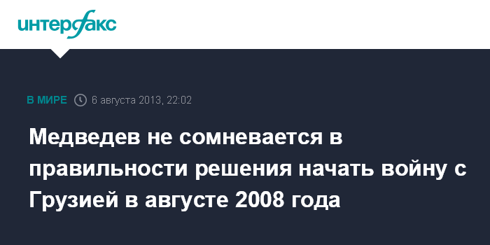 Медведев не сомневается в правильности решения начать войну с Грузией в августе 2008 года