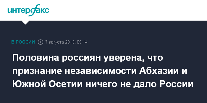 Половина россиян уверена, что признание независимости Абхазии и Южной Осетии ничего не дало России