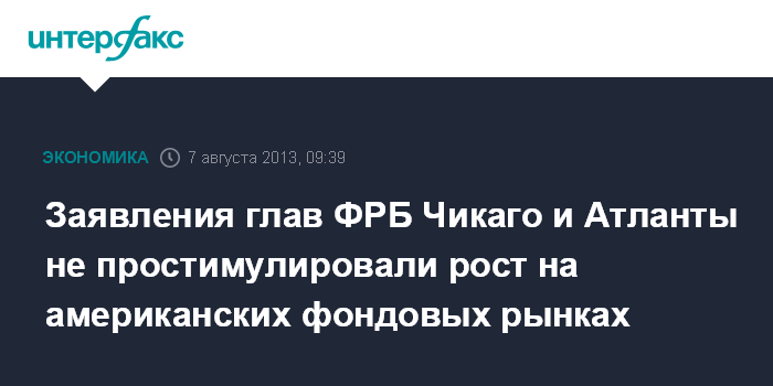 Заявления глав ФРБ Чикаго и Атланты не простимулировали рост на американских фондовых рынках