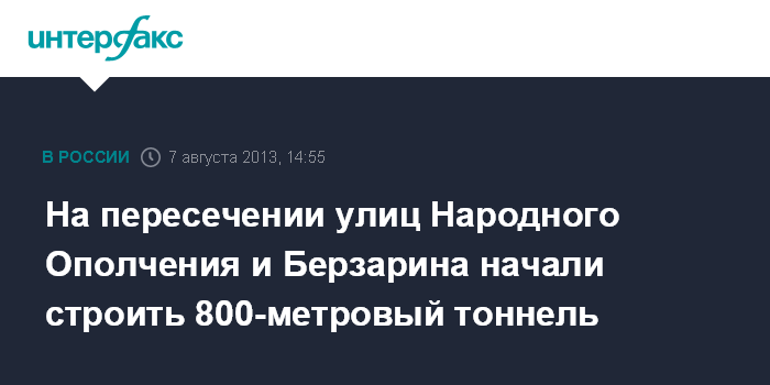 На пересечении улиц Народного Ополчения и Берзарина начали строить 800-метровый тоннель