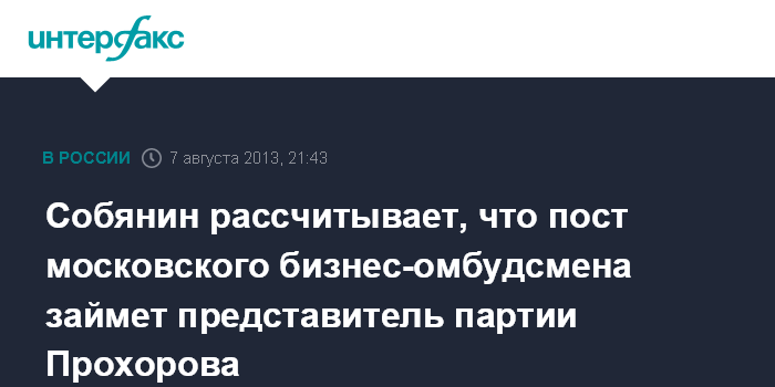 Собянин рассчитывает, что пост московского бизнес-омбудсмена займет представитель партии Прохорова