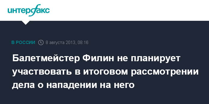 Балетмейстер Филин не планирует участвовать в итоговом рассмотрении дела о нападении на него