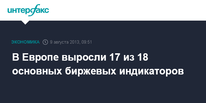 В Европе выросли 17 из 18 основных биржевых индикаторов