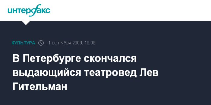 Москва. 11 сентября. INTERFAX.RU - В Петербурге на 81-ом году жизни скончался старейшина театроведческой науки профессор Государственной академии театрального искусства Лев Гительман.