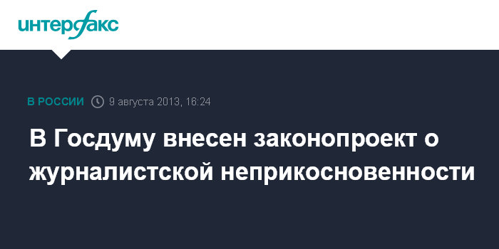 В Госдуму внесен законопроект о журналистской неприкосновенности