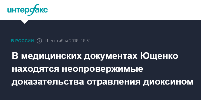 В медицинских документах Ющенко находятся неопровержимые доказательства отравления диоксином
