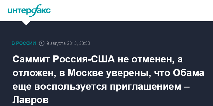 Саммит Россия-США не отменен, а отложен, в Москве уверены, что Обама еще воспользуется приглашением – Лавров