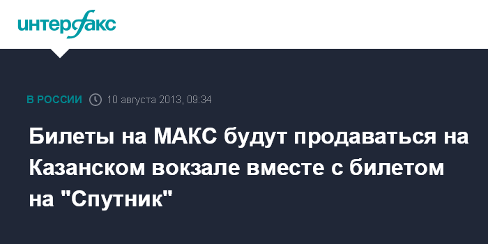 Билеты на МАКС будут продаваться на Казанском вокзале вместе с билетом на "Спутник"