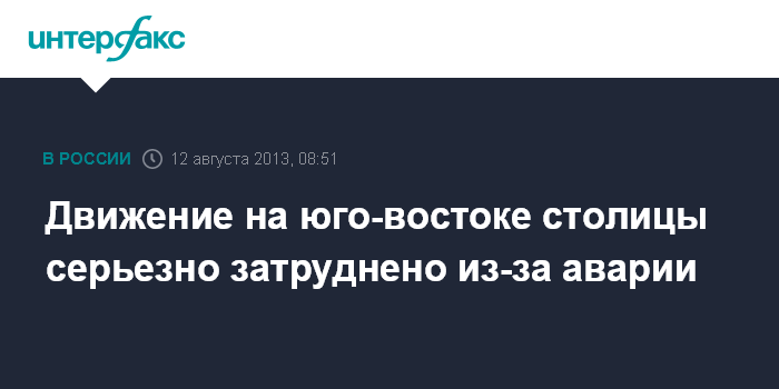 Движение на юго-востоке столицы серьезно затруднено из-за аварии