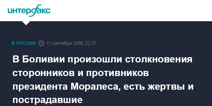 Столкновения произошли в населенном пункте Порвенир между крестьянами, выступавшими за Э.Моралеса и группой молодых людей, поддерживавших оппозицию.